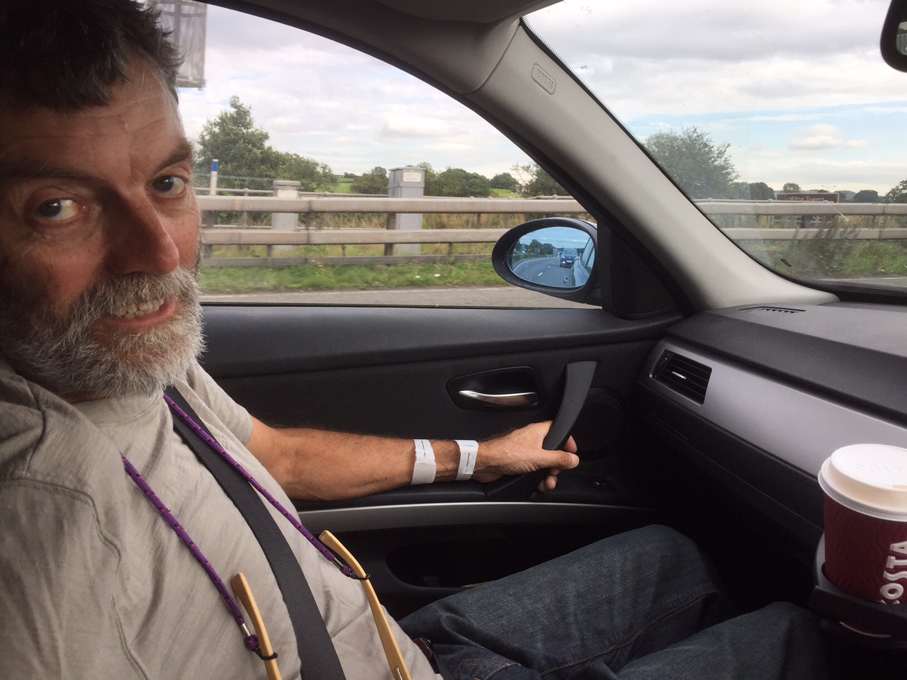 Richard was discharged, and I took him home to stay with me a couple of days before he goes off with his brother. In the car on the way home from Wigan.