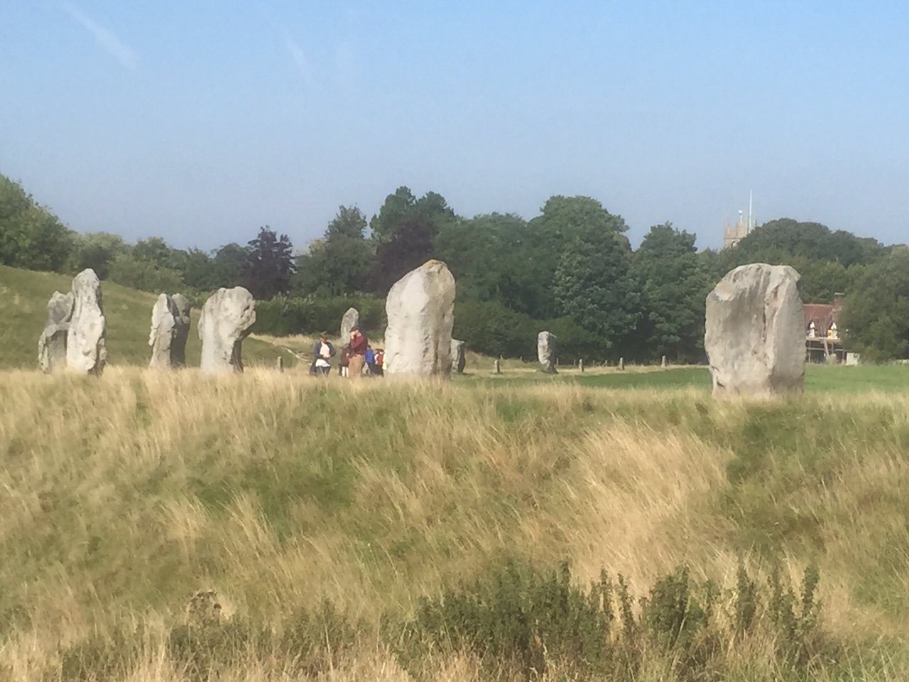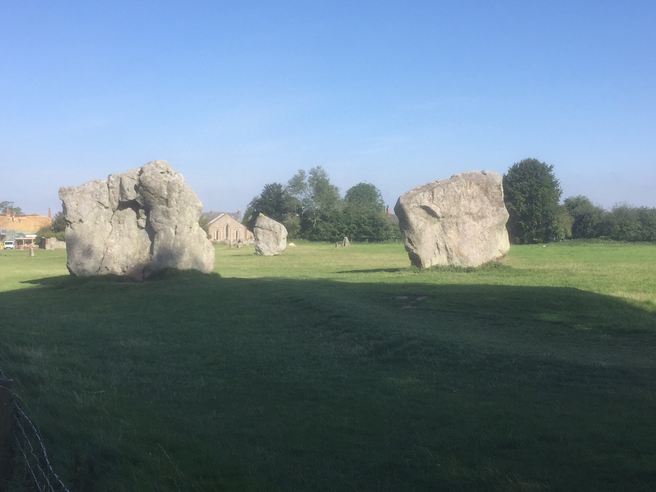 I went round a corner and got a surprise - all these stones sticking up - no, not stones - large boulders, but they had been cut, and placed and put on their ends - so by man. Turns out this was a large stone circle - Avebury Henge (like Stonehenge). See its wikipedia page.