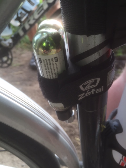 At a rest stop I noticed an odd thing on a fellow rider's bike. Was this a contraption to assist hill climbing? Turns out it is a couple of CO2 cannisters and valve for pumping up tyres - the cool thing being that it is mounted on the frame.