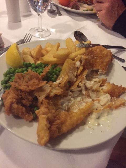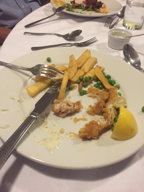 And after a break , showers etc, on to dinner. Strange that some people had no appetite at all - just too tired (Anita's plate when done).