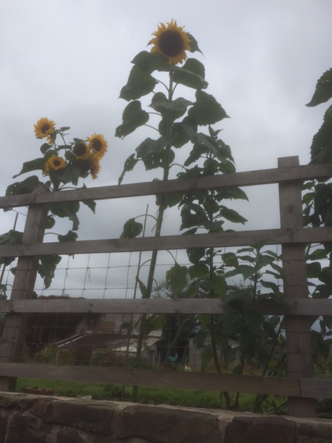 And on the way out - wow - the tallest sunflowers I have seen. These were grounded on the other side of the wall and the tall one was probably about 10 feet tall. It seems a very English competition to grow tall sunflowers.
