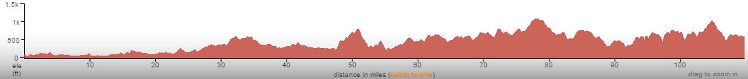 So the stats: cycled 110 miles, ave. speed 13.38 mph, 8:11 hrs on the bike, climbed 8,672 feet, ave. temp 15.1 centigrade.